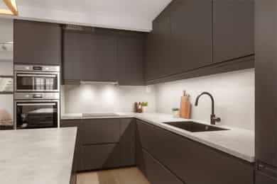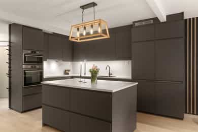 Integrerte hvitevarer medfølger(stekeovn, mikro, oppvaskmaskin, integrert kjøleskap og fryser).