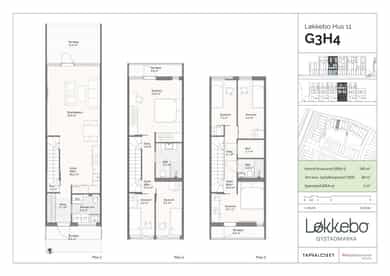 I attraktive omgivelser rett utenfor Jessheim sentrum, bygges det nå et stort prosjekt - idylliske Løkkebo, med 123 stilfulle og familievennlige rekkehus i varierende størrelse fra ca. 96 til 144 kvm, over to og tre etasjer. Prosjektet har felles parkeringsanlegg under bakkenivå og hyggelig fellesareal til glede for store og små. Beliggenheten er sentral og barnevennlig, med turløype rett ved, samt gangavstand til skoler, barnehager, idrettsanlegg og butikker. Byggetrinn 1 består av 20 rekkehus over to til tre plan, fordelt på fire hustyper. Boligene har tilnærmet lik planløsning, med moderne innredninger fra Strai, pent laminatgulv i enstavs design, vannbåren gulvvarme og balansert ventilasjon, for å nevne noe. Det er ellers herlige terrasser både ved inngangspartiet og utenfor stuen, i tillegg til at enkelte av rekkehusene har utgang til takterrasse fra andre eller tredje etasje. Hvert rekkehus har innvendig bod, sportsbod i parkeringskjeller. Rekkehusene har åpen stue-/kjøkkenløsning og en flislagt entré med tilgang til vaskerom/teknisk rom i første etasje. Vaskerommet er utstyrt med wc og en kjekk arbeidsbenk. Stuen og kjøkkenet utgjør et nydelig allrom med vinduer fra gulv til tak, spiseplass, lekker kjøkkeninnredning og alle hvitevarer integrert. I andre etasje er det et delikat bad og tre gode soverom. Rekkehusene over tre etasjer har ytterligere ett bad, to til tre soverom eller stue. Kort fortalt - Prosjekt med totalt 123 rekkehus. - Størrelser fra ca. 96 til 144 kvm. - Byggetrinn 1 består av 20 rekkehus. - Parkering i parkeringskjeller, hvor man enten kan kjøpe plasser for kr. 375 000,- pr. plass eller leie for kr. 1 850,- pr. mnd. - Herlige terrasser på to sider. - Flotte fellesarealer med lekeplass. - Entré med skyvedørsgarderobe. - Stue og kjøkken - et nydelig allrom. - Stilig Strai-kjøkken eller lignende. - Integrerte hvitevarer fra Electrolux. - Store, flotte vinduer fra gulv til tak. - Plass til både sofa og spisebord. - Lekkert, dels flislagt bad i 2. etasje. - Vaskerom/wc/teknisk rom i 1. etasje. - Tre til seks soverom med plass til skap. - Innvendig bod og ekstern sportsbod. - Balansert ventilasjonsanlegg. - Anlegget har varmegjenvinning. - Vannbåren gulvvarme i flere rom. - Enstavs laminat og malte vegger.