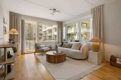 Lys og moderne 3-roms hjørneleilighet med to solrike balkonger, heis og garasjeplass med lader - Lave energikostnader
