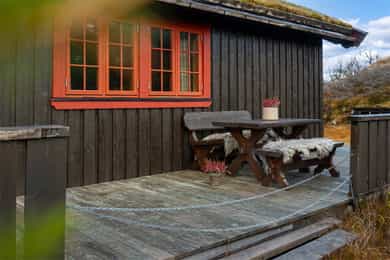Fin og tradisjonell hytte | Stor tomt 1,8 mål | Solrik terrasse 49kvm | 3 soverom | Peis | Parkering | Under 2t fra Oslo