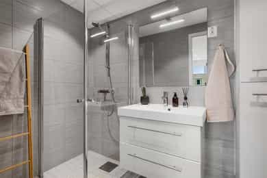 Vet du om det har det blitt utført arbeid på bad/våtrom, enten i din eller tidligere eiertid? - Ja, faglært. Fagfolk AS Totalrenovering av Bad 2016. Vet du om tettesjikt, membran eller sluk ble fornyet eller oppgradert? - Ja, faglært. Fagfolk AS Totalrenovering av bad 2016. Vet du om det finnes dokumentasjon på hvordan bad eller vaskerom er bygget opp? - Ja, faglært. Fagfolk AS Totalrenovering av bad 2016 Dokumentasjon ligger på boligmapps. Vet du om det er gjort arbeid på det elektriske anlegget, enten i din eller tidligere eiertid? Foreligger det en samsvarserklæring? - Ja. Egeninnsats (med papirer). Er det installert el-billader på eiendommen/boligen? - Nei. Mulighet for å leie Lader av ANEO. Vet du om det er gjort arbeid på vann og avløp, enten i din eller tidligere eiertid? - Ja, faglært. Rørteknikk AS Rør i rør wc, servant, kjøkken, dusj og vaskemaskin Rør i rør wc rom og servant Utskiftning av Sluk 2016. Vet du om det er gjort arbeid på eiendommen som ikke er nevnt i de andre spørsmålene? - Ja, både faglært og ufaglært. Nytt kjøkken 2023. Vet du om det er eller har vært feil på tilbehøret som følger med eiendommen? - Ja. Kjøleskapet lakk vann ned på gulv under kjøleskap, synlig skade i gulv, vann er tørket helt opp og ingen andre skader en på gulvet. Selgers egenerklæringsskjema følger vedlagt salgsoppgaven.