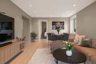- Senket tak i stue, gang, kjøkken og bad, samt montert spotter.