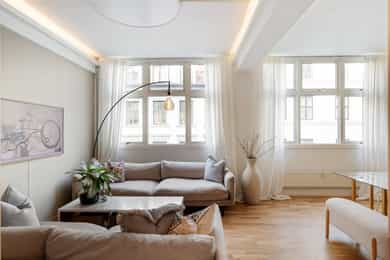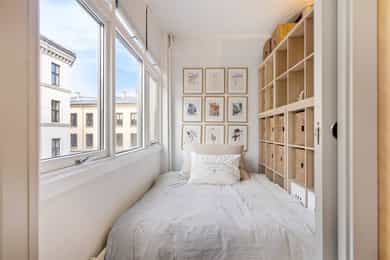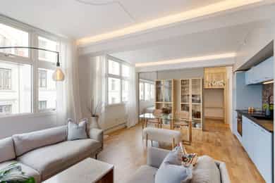 Velkommen til Bidenkaps gate 3. Dette er en attraktiv og innbydende 2-roms med rolig og tilbaketrukket beliggenhet i enveiskjørt sidegate på St. Hanshaugen. Her bor du sentralt, men skjermet, med umiddelbar nærhet til dagligvare, kollektivtransport, kafeer, restauranter og grønne rekreasjonsområder. - 2-roms med god planløsning - Store vinduer og generøs takhøyde - Stue og kjøkken ble malt i 2024, og soverommet i 2025 - Kjøkken fra 2022 - Parkett fra 2022 - Walk-in-closet - A-konto fjernvarme, varmtvann, internett inkl. - IN-ordning: Ved innfrielse av fellesgjeld reduseres felleskostnadene til kr 3 249,-* - Balansert ventilasjon - Heisadkomst - Mulighet for leie av garasjeplass* - Pent gårdsrom med sittegrupper - Innendørs sykkelparkering - Bygget ble omgjort til bolig i 2007/2008