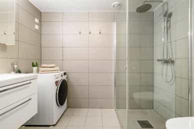 TG2 5. Etasje - Bad - Overflater vegger og himling Det er påvist at noen fliser har bom (hulrom under). Hulrom (bomflis) oppstår når flislimet ikke har fullstendig kontakt med flisen og underlaget over hele flatearealet. Konsekvens/tiltak: Bomfliser har redusert stabilitet og kan over tid løsne, sprekke eller slippe fukt gjennom flislaget, noe som reduserer både funksjon og levetid. Det anbefales å utbedre aktuelle fliser ved å fjerne og legge disse på nytt med korrekt vedheft, for å sikre tett og varig overflate. Helse, miljø og sikkerhet Boligen ligger minimum tre etasjer over bakkenivå og radonmåling er ikke relevant.