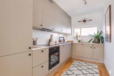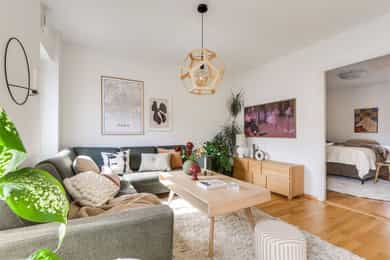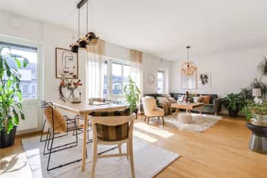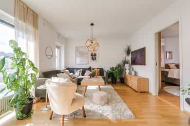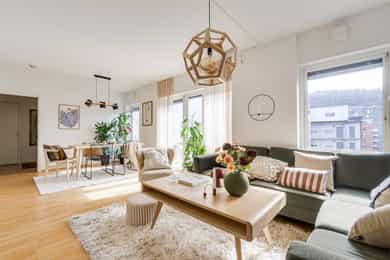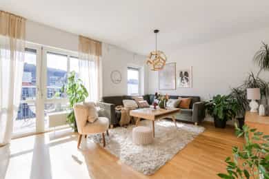 Nydelig, gjennomgående 4-roms i nyere bygg. Kjøkken 2025. Sørvestvendt balkong på 8 m². Garasje m/lader. Vv/fyring ink.