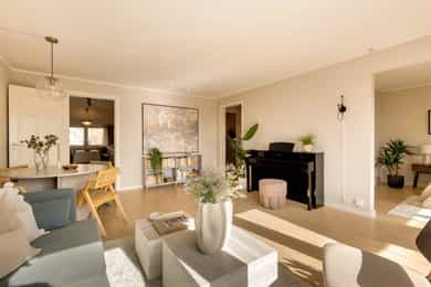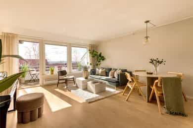 Jonas Dahlén har gleden av å presentere Sarpsborggata 11! En lys og gjennomgående toppleilighet med god planløsning og en innbydende standard. Boligen er velholdt og har moderne løsninger samt en lun og harmonisk atmosfære. Fra stuen er det utgang til en herlig, usjenert balkong med flott utsyn mot både by og fjord med svært gode solforhold gjennom dagen. Det medfølger én garasjeplass i lukket anlegg med heisadkomst, noe som gir en enkel og komfortabel hverdag. Leiligheten ligger attraktivt til på Bjølsen med koselige butikker, kafeer og restauranter et steinkast unna. Her bor du rolig og sentralt i et barnevennlig område, med barnehager, skoler og store grøntområder i nærheten. - Heis - Solrik balkong - Separat kjøkken - Stor kjellerbod på 9 kvm - Garasjeplass med el-billader