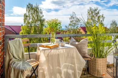 - Treheller på balkonggulv, og pusset opp gulvluke på balkong