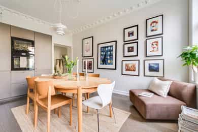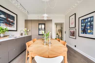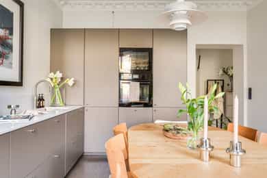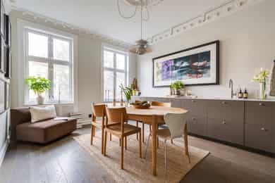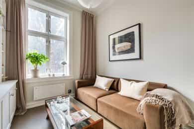 Vesentlig oppusset/modernisert 3-roms med herlige fasiliteter Nye gulv, nytt kjøkken, modernisert bad og overflater fra 2025 Svært gjennomført og lekker finish Romslig spisekjøkken Mulighet for 2 soverom Plassbygd skapinnredning Meget god, gjennomgående planløsning Himling på nesten 3 meter med stukkaturer og rosetter Store vindusflater med fritt utsyn Gulvvarme i samtlige rom Stort bad med to innganger (ensuitbad fra soverom) To gode soverom (ett innredet som stue i dag) Nydelig utsyn uten innsyn Bod i kjeller og på loft på til sammen over 14 kvm. Svært sentral beliggenhet med "alt" utenfor døren Grønn og idyllisk bakgård Godt kollektivtilbud og parkeringsmuligheter Kort gangavstand til områdets parker og friarealer Trafikkstille og skjermet