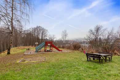 Pen halvpart av tomannsbolig m/hybel - 5 soverom - Solrik hage og terrasse med utsikt - Garasje - Familievennlig!
