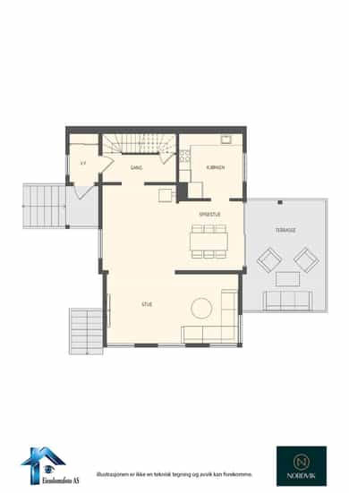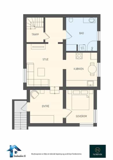 BRA-i: 62 kvm. Entré, soverom, stue, kjøkken, fordelergang, bad og trapperom