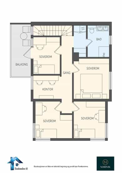 BRA-i: 66 kvm. Fordelergang, bad, 4 soverom og kontor