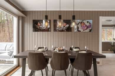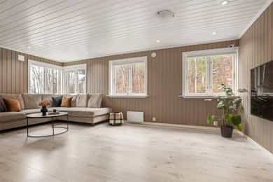 1. Etasje: Entré/gang: Praktisk entre med skyvedørsgarderobe som gir god plass for oppbevaring av yttertøy. Stue: Stor og romslig stue med gode møbleringsmuligheter. Spisestuen er i praktisk tilknytning til kjøkkenet, hvor det er god plass for langbord med tilhørende møblement. I tillegg er det peis i stuen som kan nytes fra spiseplassen. Videre er det egen tv-stue som enkelt møbleres med romslig sofagruppe og tilhørende tv-møblement. Stuene er kledd i moderne fargetoner og har store vindusflater som bidrar til godt med lysinnslipp. Det er innfelte downlights i tak for tilpasset belysning. Kjøkken: Pent og moderne kjøkken fra 2024 med innredning fra Power, med glatte fronter og laminert benkeplate med nedfelt utslagsvask. Kjøkkenet er utstyrt med kullfiltervifte, lekkasjestopper og komfyrvakt. Kjøkkenet er utstyrt med integrerte hvitevarer som micro, platetopp, oppvaskmaskin samt frittstående kjøleskap. 2. Etasje: Soverom: I denne etasjen finner du fire gode soverom. Alle soverommene gir plass for enten dobbeltseng eller enkeltseng, garderobeskap og annet ønskelig møblement. Soverommene er malt i fine farger og har godt med naturlig lys via vinduer. Gang/kontor: Deler av gangen er i dag innredet som praktisk kontor med god plass for skrivebord og hyller. Perfekt som hjemmekontor. Bad: Pent flislagt bad som antas å være renovert i år 2013. Badet har flislagte overflater og varmekabler i gulv. Videre er badet utstyrt med dobbel servant med underskap, toalett og dusjnisje med regndusj og innfellbare glassdører. Ved badet er det laget nisje for opplegg til vaskemaskin og tørketrommel. U. Etasje: Entré: Romslig gang med flislagt gulv og varmekabler. Gangen gir god plass for oppbevaring i garderobeskap. Stue: Stue med flislagt gulv og varmekabler. Stuen gir god plass til møblement som sofagruppe og tv. Kjøkken: Kjøkkenrom med flislagt gulv og varmekabler. Kjøkkenet har slette hvite fronter og nisje for frittstående hvitevarer. Integrert kjøleskap/frys. Soverom: Soverom med plass for dobbeltseng og tilhørende nattbord. Bad: Bad fra rundt år 2000 med fliser på gulv og flis/betong på vegger. Rommet er utstyrt med dusjkabinett, baderomsinnredning med speil, innebygget sisterne og har opplegg for vaskemaskin. Badet fikk nye baderomsmøbler og dusjkabinett i 2023.