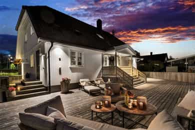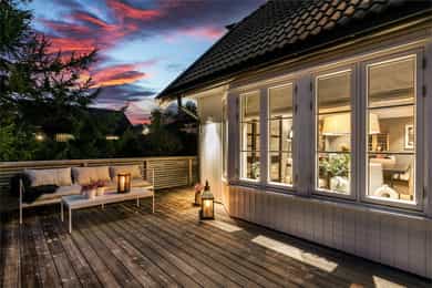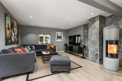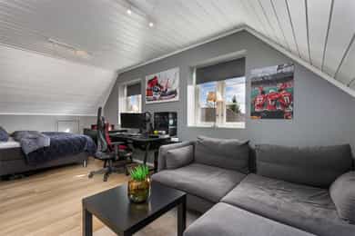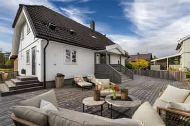 Velkommen til Jakobsbråtan 9, en stor, stilren og velholdt enebolig over tre plan. Området er ettertraktet og familievennlig, i kort gangavstand til skole, dagligvare, barnehager og helårs turveier. En inngjerdet hage innbyr til lek for de minste, og flotte uteplasser inkluderer en herlig terrasse på over 200 kvm. Terrassen ble oppført i 2019, og samme år fikk boligen nye vinduer. Parkeringen er god; i eller utenfor en stor dobbelgarasje fra 2025. Kort fortalt: - Lekker enebolig over tre plan. - Vinduer og kledning fra 2019. - Dobbelgarasje oppført i 2025. - Terrasse rundt hele 1. etasje. - Uteplass ved underetasjen. - En balkong oppgradert i 2018. - Inngjerdet hage på nedsiden. - Gulvvarme i hele 1. etasje. - Klebersteinsovn montert i stuen. - Mulighet for flere soverom.