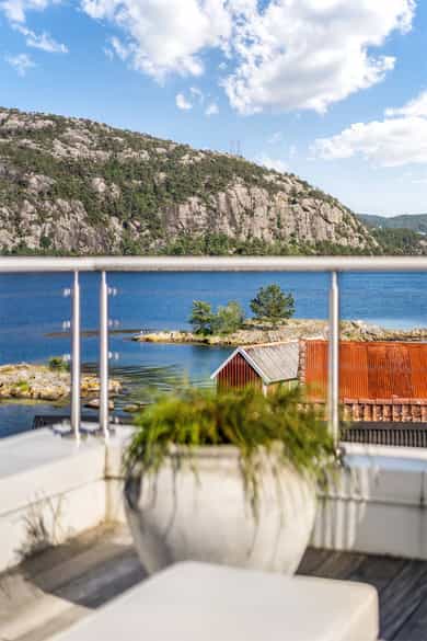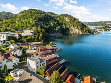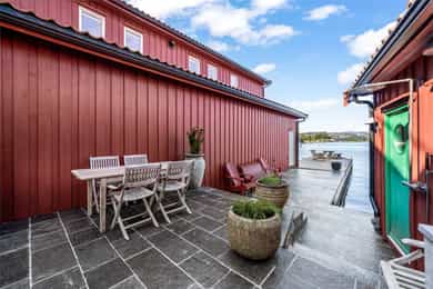 Boligen har en sjelden beliggenhet helt i sjøkanten – faktisk delvis over sjøen – og kombinerer komfort, funksjonalitet og høy bokvalitet. Med et bruksareal på over 400 m² tilbyr eiendommen romslige løsninger, vannbåren varme i hele bygget og inkludert garasje. Overnattingskapasiteten er på opptil 16 personer, noe som gjør boligen godt egnet for storfamilier eller representasjon. Uteområdet er gjennomtenkt og innbydende, med flere lune, solrike soner. Her finnes en stor og skjermet uteplass med både peis og fullt utstyrt utekjøkken. I tillegg er det en 40 m² takterrasse i 3. etasje med vakker utsikt og gode solforhold. Eiendommen er meget godt tilrettelagt for båtliv, med tre båtplasser under tak: to med bredde 3,6 meter og lengde 11 meter, samt én med bredde 2,7 meter og lengde 6 meter. Den samlede kailengden utgjør 32 meter, hvor ytterste del har en sjødybde på ca. 3 meter. Området gir rike muligheter for friluftsliv, med nærhet til sjø, skog og gode fiskeplasser. Eiendommen ligger helt innerst i Strandeveien, uten gjennomgangstrafikk. Naboen er en kommunal brygge med snuplass. Båtutfarter i området er både varierte og attraktive – blant annet rundt Hidra og inn til Flekkefjord, en livlig sørlandsby med stort servicetilbud og sjarmerende småbymiljø. Fjellse er et lite og inkluderende lokalsamfunn med et sosialt og hjelpsomt nabolag. Det arrangeres flere fellesaktiviteter i løpet av året, som båtturer og hyggelige treff. Den årlige Fjellsefesten, samler både fastboende og besøkende, og byr på aktiviteter for både barn og voksne. Tidligere minkhus/pelsgårdsdrift, men avviklet fordi kommunen ikke godkjente det. Det ble deretter brukt som skoverktsted.
