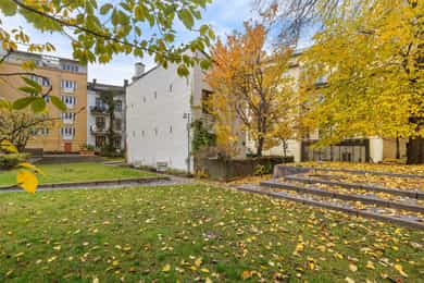 Unik, sjarmerende enebolig med privat, lekkert designet og frodig hage få minutters gange fra Karl Johan og hovedstadens yrende kulturliv. Den klassiske og selveide bygningen fra 1875 ligger i en idyllisk, prisbelønnet bakgård og er betydelig oppgradert innvendig og utvendig.