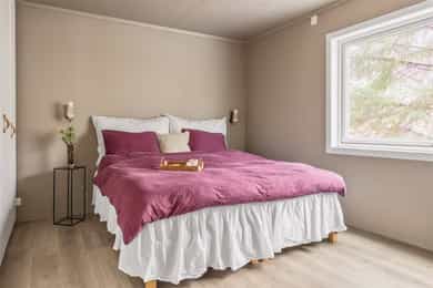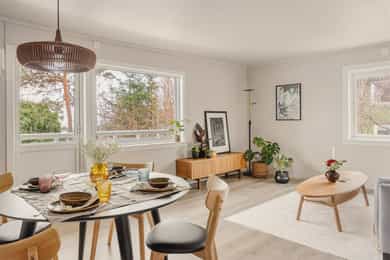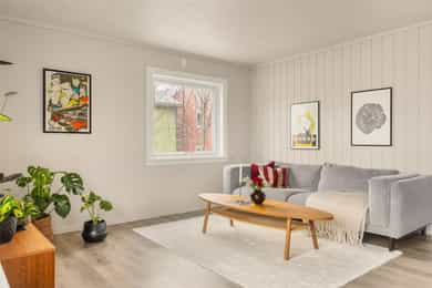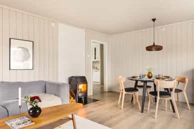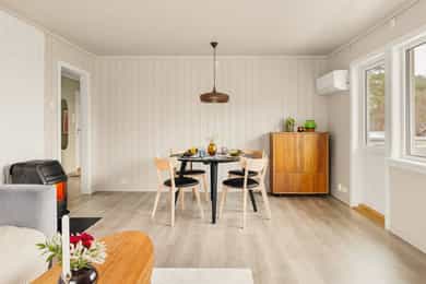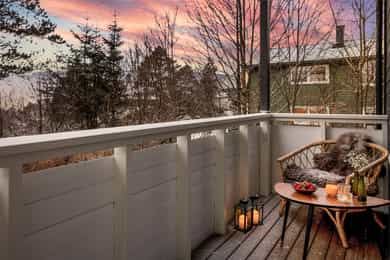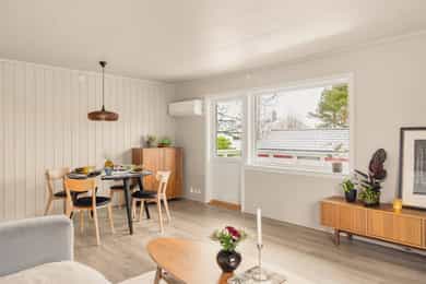 Delikat 3-roms selveierleilighet med solrik balkong på 5,3 m², peis og parkeringsplass. Nye vinduer og kledning (2023).