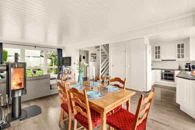 Informasjon er hentet fra vedlagte tilstandsrapport, datert 12.09.2025 Vinduer og dører: 2. etasje: - Vinduer fra 1979. - Innerdører med ukjent alder. 1. etasje: - Terrassedør kjøkken fra 2012. - Vindu i kjøkken fra 1977. Resterende vinduer med stempel: 30.06.15. - Vindu i spisestue er fra 1979. Resterende vinduer med stempel: 30.06.15. - Vindu i stue med stempel: 30.06.15. - Innerdører med ukjent alder. Trapper: Innvendig trapp er en åpen tretrapp som er malt. Balkong/terrasse: Nordøst-vendt terrasse på 44 m² med adkomst fra kjøkken. Eier opplyser å ha slipt/beiset terrassen i 2024. Sørøst-vendt markterrasse på 20 m² med adkomst fra entre. Eier opplyser å ha slipt/beiset markterrassen i 2024. VVS-installasjoner: Type pipe: Element Type ildsted: Vedovn Type avløpsrør: Plast Type vannrør: Kobber, Plast Deler av innvendige avløpsrør og vannrør er skiftet i forbindelse med oppgradering av bad/kjøkken. Varmepumpe, luft til luft. Varmepumpen ble montert i 2024 av Varmepumpe Energy AS. Varmtvannsbereder plassert på gulv under kjøkkenbenk, ca 120 liter. Luftbehandling: Naturlig ventilasjon. Elkraft: Automatsikringer. Nedenfor gjengis en kort oppsummering der den bygningssakyndige har beskrevet avvik ved boligen som har fått tilstandsgrad 2 (TG2) eller 3 (TG3). TG3 med store eller alvorlige avvik: Toalettrom: Rommet har ingen ventilasjon: Prisestimatet gjelder for etablering av ventilasjon. Mangelfull ventilering gir fare for fuktproblematikk og dårlige inneklima. Ventilering må etableres i den grad dette er mulig å gjennomføre. Utbedringskostnader: 10 000 - 50 000 TG2 med avvik som kan kreve tiltak: Drenering: Fall i terreng oppfyller ikke dagens anbefaling på minst 1:50 i en bredde av 3 meter. Taknedløp ved bod er avsluttet over bakken uten utkast. Ved arrondering av terreng eller oppgradering av drenering anbefales det etablert fall i terrenget på min. 1:50 i en bredde på 3 meter. Manglende fall i terrenget kan gi økt fuktbelastning mot bygningen. Taknedløp bør etableres med utkast eller ført i et lukket avløpsanlegg, slik at takvannet kontrollert blir ført bort fra bygningen. Støttemur: Rekkverk mangler. Nivåforskjell på mer enn 0,5 meter der det er mykt underlag, må også sikres med rekkverk, gjerde, tett vegetasjon eller liknende. Rekkverk bør etableres. Vinduer og dører: 2 etasje: Det registreres harde tettelister som pga dette tetter dårlig. Karmer er værslitte. Enkelte vindu tar i karm og har behov for justering. Mer enn halve levetiden er oppbrukt for isolerglassvinduene (glassene er eldre enn 30 år). Isolerglassvinduer har skjulte konstruksjoner og det er fare for punktering. Nedsatt energieffektivitet må påregnes. 1 etasje: Mer enn halve levetiden er oppbrukt for isolerglassvinduene (glassene er eldre enn 30 år). Isolerglassvinduer har skjulte konstruksjoner og det er fare for punktering. Nedsatt energieffektivitet må påregnes. Det registreres harde tettelister som pga dette tetter dårlig. Karmer er værslitte. Avflassing på innside karm på enkelte vinduer. Enkelte vindu tar i karm og har behov for justering. Vinduer fungerer med dagens bruk, men anbefales på sikt å bli skiftet ut. Overflatebehandlinger anbefales. Justeringer/smøring anbefales. Yttervegger: Panel er delvis oppsprukket og værslitt samt noe avflassing av maling. Luftingen i nedre kant av kledningen mot grunnmuren er liten eller fraværende. Det mangler lusing/musebånd i konstruksjonens nedre kant. Løsning for lufting ser ut til å ha fungert, men må hensyntas ved endringer av konstruksjonen slik som ved feks. tilleggsisolering ol. Rengjøring og overflatebehandling anbefales. Musetettingen bør utbedres. Loft (konstruksjonsoppbygging): Undertaket ved rørføring og en gipsplate mot nabo er misfarget (svertesopp/muggsopp). Jevnlig tilsyn anbefales. Misfarging i form av svertesopp/muggsopp kan komme som følge av luftlekkasjer til kaldt loft hvor varmt, fuktig luft kondenserer på undertaket. Ved negativ utvikling anbefales det ytterligere undersøkelser og nødvendige tiltak må iverksettes som utbedring av dampsperre og/eller økt lufting. Taktekking: Det er observert avflassing i overflate på enkelte beslag. Mer enn halvparten av forventet brukstid er passert på taktekkingen/undertaket. Overvåk tilstanden jevnlig. For å få tilstandsgrad 0 eller 1 må tekkingen skiftes ut, men tidspunktet for når dette er nødvendig er vanskelig å si noe om. Utbedring/utskifting av beslagsløsninger anbefales for å unngå lekkasjer og skader. Ildsted/Skorstein: Det mangler ildfast plate på gulvet under sotluken/feieluken på pipen. Merknad: Det er påvist sprekk i innlegget på vedovnen. Ytterligere undersøkelser anbefales. Det kan ikke utelukkes behov for tiltak. Det er fremvist dokumentasjon på feiing i 2025 uten avvik fra Brann- og redningsetaten. Ildfast plate på gulvet under sotluke/feieluke anbefales. Kjøkken Oppsummering av overflater og innredning: Det er ikke påvist bruk av komfyrvakt og automatisk vannstopper etter dagens krav. TG1: Normal slitegrad på innredning iht. til alder. Det anbefales å montere automatisk vannstopper og komfyrvakt. Trapp: Rekkverk måles til en høyde under 90cm. Det er for stor avstand mellom rekkverksspiler (over 10 cm) samt løse. Det er for stor avstand mellom trappetrinn (over 10 cm). Det mangler håndløper på veggen. Tiltak må gjøres for å bedre personsikkerhet. Avløpsrør: Deler av innvendige avløpsrør har nådd en høy alder og gir økt risiko for skader i tiden som kommer. Med tanke på alder kan skader plutselig oppstå på anlegg av eldre årgang. Jevnlig tilsyn anbefales. Ved negativ utvikling bør tiltak utføres. Vannledninger: Deler av vannrør innvendig har nådd en alder hvor det vil være økt risiko for lekkasjer. Deler av vannrør er ikke isolert (i skap i entre). Dette kan medføre kondensering. Manglende rørklammer på vannledninger hvor stoppekran er plassert. Vannrør må isoleres i kalde 