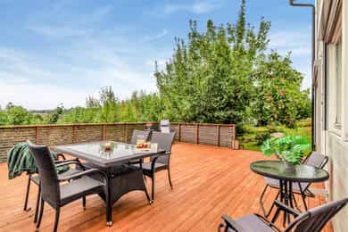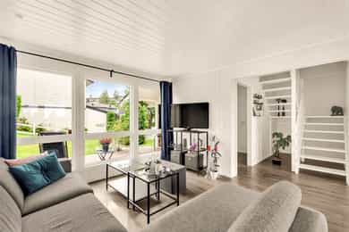 Lys og familievennlig halvpart tomannsbolig m/markanær beliggenhet! Flotte uteplasser - Garasje - Peis - Utsikt!