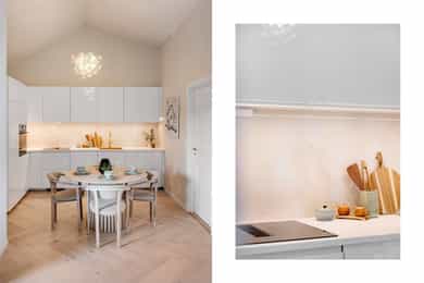 Noen ganger må en bolig faktisk bare oppleves. Denne må det! Helt unike kvaliteter designet spesielt til denne leiligheten. Velkommen til en rålekker toppleilighet som er nyoppusset i 2022 med karakter, lekre detaljer og særegenhet! Planløsningen gir kreativ utnyttelse og leiligheten forlenges med en fantastisk privat terrasse. Høydepunkter: