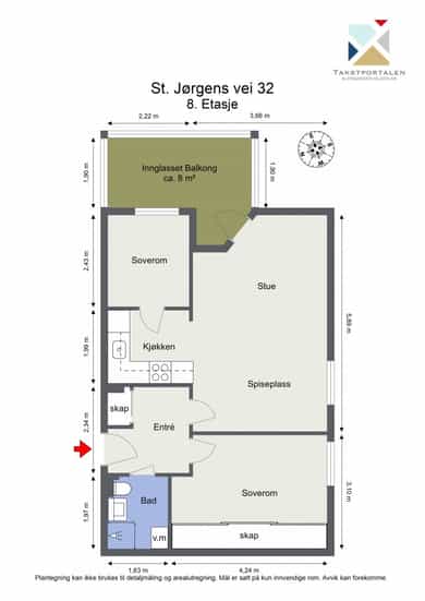 Det gjøres særskilt oppmerksom på at bod som er medtatt som BRA-e og i totalt BRA ligger på borettslagets fellesareal, men disponeres av denne andelen. Borettslaget kan på et senere tidspunkt omdisponere denne bruken.