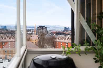 Entré: Lys og innbydende entré som ønsker deg velkommen. Gulvet er lagt med 1-stavs laminat, og veggene har glatte, malte flater, mens innfelte spotter i taket gir god belysning. Entréen har en praktisk skyvedørsgarderobe som gir rikelig med oppbevaringsplass til sko og yttertøy. I tillegg er det moderne dørtelefon med skjermvisning og døråpner, som gir enkel og trygg adgang til boligen. Stue: Stuen har romslige soner som gir god plass til både et generøst spisebord, og en komfortabel sofagruppe. Store vindusflater i to himmelretninger gir et åpent preg med fin utsikt og sørger for rikelig med naturlig lys gjennom dagen. Rommet har 1-stavs laminat på gulv, glatte malte vegger og innfelte downlights i kasse. Takhøyden er målt til ca. 2,50 meter, noe som bidrar til en luftig romfølelse. Fra stuen er det direkte adkomst til en innglasset balkong, som fungerer som en hyggelig forlengelse av oppholdsrommet store deler av året. Innglasset balkong: Leiligheten har en romslig og svært innbydende innglasset balkong på ca. 8 kvm, med direkte adkomst fra stuen. Balkongen er sydøstvendt og har fine solforhold, kombinert med vidstrakt utsikt over nærområdet samt mot både by og fjord. Rekkverket er utført i aluminium med elegante glassfelter, og gulvet er flislagt for et stilrent og vedlikeholdsvennlig uttrykk. Det er montert utelys på vegg og terrassevarmer i tak. Innglassingen kan skyves helt til side, slik at balkongen enkelt kan åpnes opp på varme dager. Det er god plass til både sofagruppe, bord og grill, og balkongen fungerer som en naturlig forlengelse av stuen – perfekt for å nyte sommerdager og rolige kvelder store deler av året. Kjøkken: Kjøkkenet er utformet med en delvis åpen løsning og har en moderne, gjennomført innredning fra Epoq. Innredningen består av slette fronter kombinert med enkelte vitrinedører, samt laminert benkeplate med integrert oppvaskkum i rustfritt stål. Over benkearealet er det montert fliser, og overskapene er utstyrt med integrerte LED-downlights som gir god arbeidsbelysning. Kjøkkenet er fullt utstyrt med integrerte hvitevarer, herunder induksjonstopp, stekeovn, oppvaskmaskin samt kombinert kjøle- og fryseskap. Bad: Badet ble oppusset i regi av borettslaget i perioden 1996–2001, og fremstår i dag som et svært pent og innbydende rom etter senere oppgraderinger. Badet er i nyere tid oppgradert med mikrosement og ny baderomsinnredning, utført i mars 2025 iht. eiers opplysninger, noe som gir et moderne, stilrent og helhetlig uttrykk. Mikrosementen i en delikat beige tone bidrar til en lun og elegant atmosfære. Elektriske varmekabler i gulv og opplegg for vaskesøyle. Soverom: Leiligheten har to gode soverom med en gjennomtenkt planløsning, hvor rommene er plassert på hver sin side av boligen. Dette gir gode muligheter for privatliv og en funksjonell løsning i et arealeffektivt hjem. Hovedsoverommet er romslig og har god plass til dobbeltseng, i tillegg til hele 4 meter med praktiske skyvedørsgarderober som sørger for rikelig med oppbevaringsplass. Fra rommet kan man nyte en flott utsikt mot både by og fjord. Hovedsoverommet har adkomst fra entré, mens soverom nummer to har inngang fra kjøkkenet. Dette rommet egner seg godt som barnerom, gjesterom eller hjemmekontor, med plass til både seng og arbeidsplass. Tilstandsrapport for boligen er vedlagt salgsoppgaven. Se denne for nærmere informasjon om tilstandsgrad.