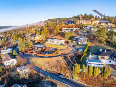 Solrik boligtomt på 821 kvm med panoramautsikt! Blindvei rett ved marka og Holmenkollen T-banestasjon. BYA 12%.
