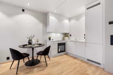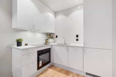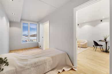 Velkommen til en moderne og innflytningsklar leilighet i 4. etasje, med en attraktiv og sentral beliggenhet midt i Bodø sentrum. Leiligheten har et funksjonelt oppsett og inneholder entré, stue med åpen kjøkkenløsning, soverom, bad og egen bod. Fra stuen er det utgang til en innglasset balkong på 5,4 m² med flott utsikt, som fungerer som en naturlig forlengelse av oppholdsrommet. I tillegg disponerer leiligheten en ekstern bod på 3 m² i kjeller. Leiligheten er påkostet med flere tilvalg – se tilvalgsoversikt, eller ta kontakt med megler for nærmere informasjon. Eiendommen har en svært sentral beliggenhet midt i Bodø sentrum med alle bymessige fasiliteter, skoler og offentlig kommunikasjon lett tilgjengelig.