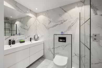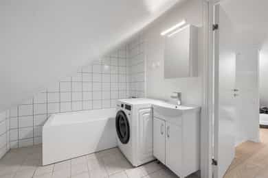 Moderne 4-roms rekkehusleilighet over to plan, med to bad (2020), vestvendt balkong og parkering i garasjerekke m/lader.