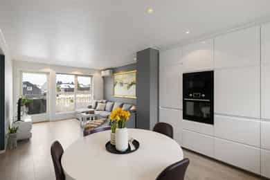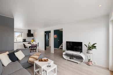 Velkommen til Prost holms vei 34 - Presentert av Idriss Eliassy i Nordvik bolig! En lys og moderne rekkehusleilighet over to plan, perfekt for deg som vil flytte rett inn. Boligen ble betydelig oppgradert i 2020 med nye overflater, nytt lekkert kjøkken, med integrerte hvitevarer og to delikate, flislagte baderom. Her får du en åpen stue- og kjøkkenløsning med utgang til en vestvendt, solrik balkong med flott utsikt og sol fra ca. 12-20:00. Leiligheten har tre fine soverom og meget gode lagringsmuligheter i boder og på loft. Parkering i rekkegarasje med el-bil lader medfølger. Kombinasjonen av umiddelbar nærhet til villmarka i Romeriksåsene og den sentrale aksen mot Oslo og Gardermoen, gjør Prost Holms vei til et svært ettertraktet sted å bo for aktive familier i alle livsfaser.