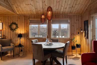 Velkommen til Øvre Kvernaskogen 234- en lekker fritidsbolig i fjellsiden, beliggende i et etablert hyttefelt. Her har man 6 minutters kjøring til Furedalen Alpin. Alpinanlegget har to skiheiser, ett barnetrekk, varmestue med café, skiutleie og skiskole. Her kan du med andre ord ha en nydelig dag i anlegget med hele familien! Liker du bedre å gå på langrennsski? Ca. 97m fra døren finner du 70km preparert løype innenfor 15km. Fra hytten tar det 11 minutter å kjøre til sentrum. Norheimsund sentrum har et godt utvalgt av butikker og servicetilbud - her finner du blant annet matbutikker, klesbutikker, kafé og restauranter. Kvam kino ligger også kun en kort kjøretur unna. Hvor skal søndagsturen gå? Her kan flotte tur- og utsiktsmuligheter som Steindalsfossen og Skårsvatnet nevnes. I Skårsvatnet, også kalt Gullfiskvatnet, kan man mate "gullfisk". Dette er også en fin raste- og badeplass å ta med barna til! Øvre Kvernaskogen 234 ligger rundt en times kjøring fra Bergen sentrum.
