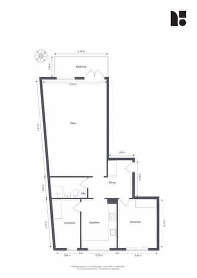 Vær oppmerksom på at det kan forekomme mindre forskjeller/avvik i målingene på grunn av kompleksiteten i romstrukturen og vinkler i leiligheten kombinert med målemetode og avrundingsregler.