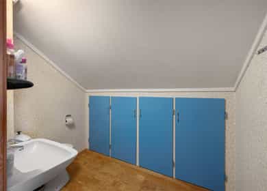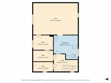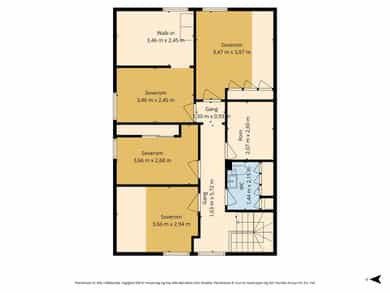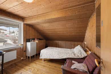 BRA-i: 45 kvm. Toalettrom, bod, gang, soverom, soverom 2, soverom 3, soverom 4, og garderobe/soverom 5.
