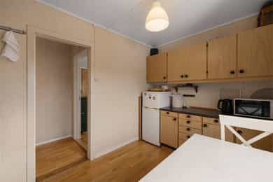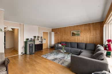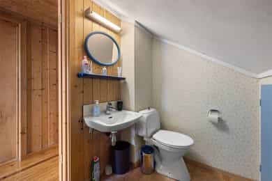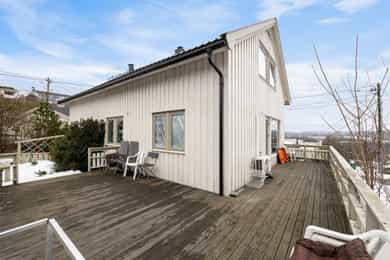 Velkommen til en eiendom med mange muligheter, perfekt for deg som søker et spennende prosjekt eller en bolig med stort utviklingspotensial. Boligen fra 1961 ligger på en solrik tomt på ca. 909 kvm og byr på en svært romslig planløsning. Boligen er en innholdsrik familiebolig over tre plan med seks soverom, et bad, og separat toalettrom samt en romslig stue med utgang til 40 kvm terrasse. Underetasjen byr på praktisk vaskerom og rikelig med lagringsplass i flere store kjellerboder og grovkjeller. Det elektriske anlegget har en kombinasjon av automatsikringer og skrusikringer. Boligen er av eldre dato og det må påregnes totaloppussing. Det mest unike med eiendommen er den foreliggende rammetillatelsen for ombygging til tomannsbolig, som inkluderer oppføring av et tilbygg for en ny boenhet og estetiske fasadeendringer som vil gi bygget et moderne løft. Hovedetasjen preges av en lun stue med parkett, utstyrt med både varmepumpe og ildsted for optimal komfort. Herfra er det direkte utgang til en stor terrasse på hele 40 kvm, som fungerer som en naturlig forlengelse av stuen i sommerhalvåret. Kjøkkenet har en eldre kjøkkeninnredning med laminert benkeplate med nedfelt ståloppvaskkum og 1-greps blandebatteri. Videre er det fliser mellom over og underskap, opplegg for oppvaskmaskin, samt komfyr med tilkoblet ventilator over. Badet er av eldre standard med gulvbelegg på gulv og baderomsplater på vegger. Innredningen består av hvit baderomsinnredning med oppbevaringsmuligheter gjennom både underskap, høyskap og et overskap med integrerte hyller og speil med belysning. Videre er det tilkoblet et vannklosett, og en dusjsone med dusjing direkte på gulv og vegg. Andre etasje er en dedikert soveromsavdeling med hele fem soverom, hvorav ett i dag er benyttet til ekstra oppbevaring av klær med et garderobeskap. I tillegg finnes et praktisk toalettrom, en gang, samt en bod som gir gode oppbevaringsmuligheter i umiddelbar nærhet til soverommene. Kjelleretasjen fungerer som boligens tekniske sone og lageravdeling. Her finner du et eget vaskerom og en grovkjeller, i tillegg til tre romslige boder og en gang som knytter rommene sammen. Dette gir rikelig med lagringsplass for alt fra sportsutstyr til sesongvarer. Eldre vaskerom med betonggulv og panel/ pussede vegger innredet med opplegg for vaskemaskin/tørketrommel. Bereder er plassert på vaskerom og er på 194 liter og produksjonsår 1999.