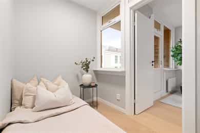 Velkommen til Grefsenveien 25 Lys 2-roms leilighet med sentral beliggenhet på Sandaker. Leiligheten ligger i byggets 3. etasje og har en flott og solrik balkong med utgang fra stuen. Boligen ble overflateoppusset i 2025 og fremstår som svært moderne og innbydende. Her får du lekre gulv, lekker baderomsinnredning og en ny, stilren kjøkkeninnredning som gir et moderne preg. Planløsningen er både praktisk og arealeffektiv, med åpen stue- og kjøkkenløsning og et delikat bad