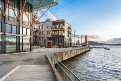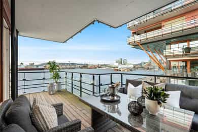 En sjelden frontleilighet ytterst på Sørengas attraktive vestside, med panoramautsikt mot fjorden, byen, Operaen og Bjørvika. Boligen kombinerer en unik plassering ved vannkanten med to balkonger, svært gode solforhold og garasjeplass – en helhet det finnes svært få sammenlignbare alternativer til i Oslo.