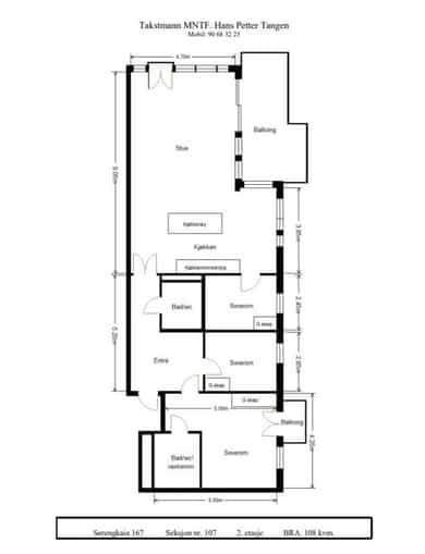 BRA-i: 108 kvm. Entré, stue/kjøkken, tre soverom og to bad.