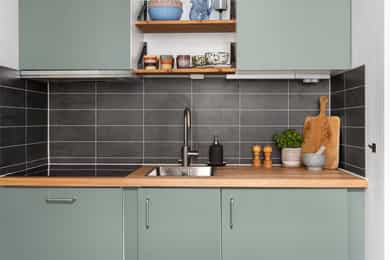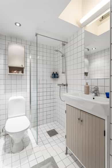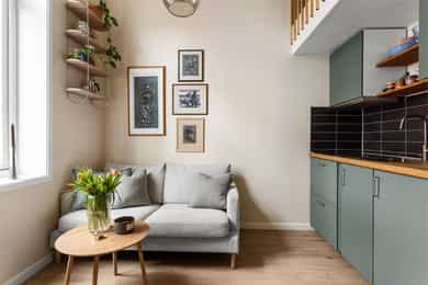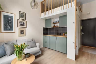 Leiligheten inneholder: Entré, stue/kjøkken og baderom. Takhøyde målt til 3.18 meter. Entré: Velkommen inn! En lys og innbydende entré med plass til sko og yttertøy. Stue/kjøkken: Lys og hyggelig stue med store vindusflater som gir rikelig med luft og lys i tillegg til generøs takhøyde på ca. 3,18 meter. Det er også adkomst til praktisk hems med plass til seng. IKEA-kjøkken fra 2025 med åpen løsning mot stuen. Moderne kjøkkeninnredning med glatte fronter, benkeplate av tre, integrert induksjonstopp og kjøleskap. Baderom: Flislagt baderom fra 2003 med varme i gulvet. Baderommet er innredet med nedfelt servant, toalett og dusjvegger/hjørne.
