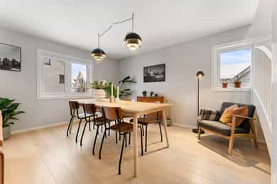 Tiltalende og familievennlig halvpart tomannsbolig med solrike uteplasser og høy standard. Boligen ble renovert i 2020 og oppleves meget velholdt med optimal planløsning og gode vindusflater på tre kanter som slipper inn rikelig med lys. Det er to lekre bad, 3 store soverom, stue, stort kjøkken i en delvis åpen løsning som gir et hyggelig allrom for hele familien. Det disponeres egen øst og vestvendt hage med tilhørende markterrasse samt carport. Legg merke til: - Høy standard - Familievennlig - Solrike uteplasser - Optimal planløsning - Carport m/lader - Mulighet for å installere peis - Nærhet til sjø, marka og byen Et hyggelig villaområde på toppen av et høydedrag i luftige og solrike omgivelser. Gangavstand til alt fra barnehager, skoler, marka, dagligvare eller Hauketo togstasjon.