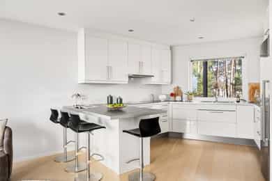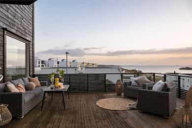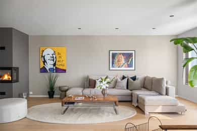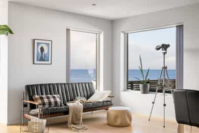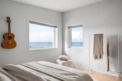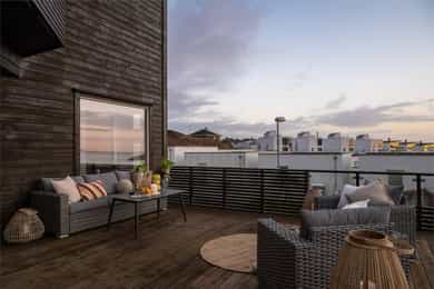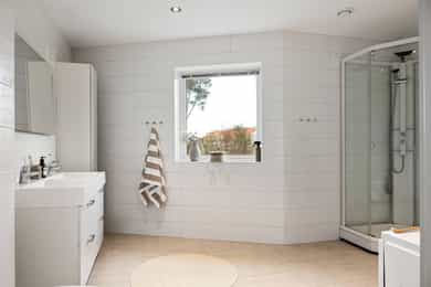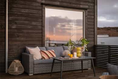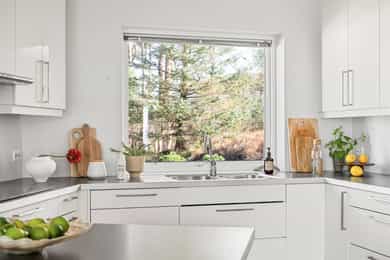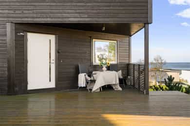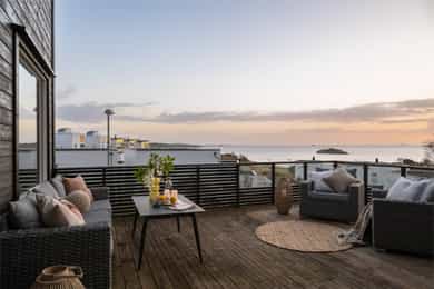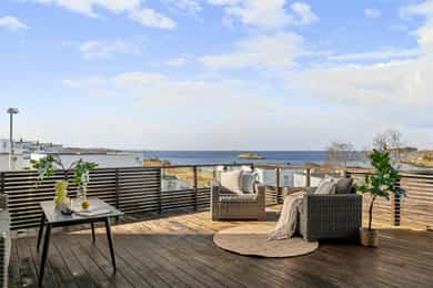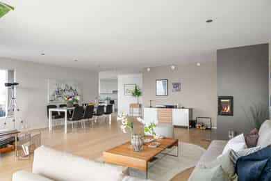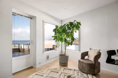• Romslig stue med peis og store vindusflater som sikrer godt lysinnslipp samtidig som man får maksimal utnyttelse av sjøutsikten