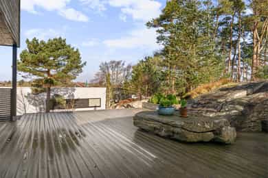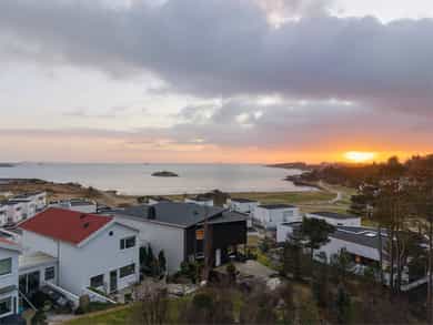 Enebolig fra 2014 med godkjent leilighet like ved Vistestranden. Fantastisk sjøutsikt og dobbel garasje