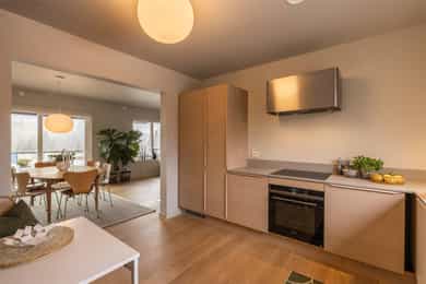 Følger med boligen: Kjøleskap, komfyr og oppvaskmaskin.