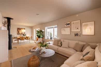 Velkommen til Pesamostubben 5, presentert av Martin Eilertsen i Nordvik Bolig! Dette er et attraktivt og moderne rekkehus som sto nytt i 2021! Boligen går over to etasjer, og rommer to stuer, kjøkken, bad, toalettrom og soverom. Boligen har opprinnelig 3 soverom, men det ene benyttes i dag som omkledningsrom. En rekke tilvalg ble gjort før ferdigstillelse, her kan du flytte rett inn! Boligen ligger i et svært barnevennlig boligområde på Eltonåsen/Holter. Eiendommen har en fri og luftig beliggenhet med flott utsikt mot Romeriksåsen, og byr på rikelig med grønne fellesarealer. Verdt å merke seg: