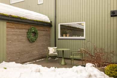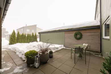- Uteområder: Screen på største soverom i 2. etasje. Større platting/terrasse. Terrassemarkise. Levegg mot nabo. Smaragd Thuja-hekk mot nabo og vei. Klatrehortensia langs gjerde bak huset. Betongheller foran huset og langs carport (mot bakhage)