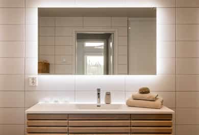 - Bad: Oppgradert baderomsinnredning på begge bad. Speil med integrert belysning på hovedbad.