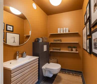 1. ETASJE Entré: Velkommen! Boligen har et overbygget inngangsparti, med carport og utebod foran inngangen. I carporten er det montert elbillader. Utenfor inngangen er det plass til sittegrupper på steinbelagt uteplass. Vel inne i entréen er det plass til å henge fra seg yttertøy og sette fra seg sko. Det er praktiske fliser på gulvet, flisene ble tilvalgt før boligen sto ferdig. Fra entréen er det inngang til en bod, med mye lagring. Her er det god plass til yttertøy og øvrig oppbevaring. Stue: Videre forbi entréen ligger stuen. Rommet er av svært fin størrelse, med store vindusflater som slipper inn rikelig med naturlig lys. Rommet har enstavns parkett og pent malte vegg- og takflater. Det er god plass til sofaseksjon, tv-møbel og spisegruppe. I rommet er det tilkoblet en vedovn, denne sikrer ekstra varme i vinterhalvåret. Fra stuen er det i tillegg utgang til en herlig terrasse med adkomst til hage. Terrassen har tregulv, og måler 12 m². Her ute er det plass til sittegrupper, samt grill. Terrassen er delvis overbygget, og har videre utgang til hagen. Kjøkken: Boligen har et moderne kjøkken, med mye benk- og skapplass! Innredningen har en lekker innredning i eik, samt compositt benkeplate med nedfelt oppvaskkum og 1-greps blandebatteri. Det er integrert oppvaskmaskin, kjøle-/fryseskap, stekeovn og nedfelt platetopp, samt tilkoblet en ventilator over kokeplassen. På kjøkkenet er det også plass til bord og stoler. Toalettrom: Etasjen har et praktisk toalettrom. Rommet er innredet med vannklosett, underskap med servant, speil og lys. 2. ETASJE Stue: Fra trappen kommer man opp i en stue. Her er det perfekt å sette bokhyller, tv-møbel og sofa - perfekt når barna tar med venner hjem! Stuen har generøs takhøyde. Bad: Etasjen har et romslig baderom med flislagte overflater. Innredningen består av vannklosett, servant med underskuffer, speil med lys, stikk og en dusjsone med dusjing direkte på gulv og vegg. I tillegg er det tilkoblet opplegg for vaskemaskin skjult bak skyvedører. Badet har, som resten av boligen, balansert ventilasjon. To soverom og omkledningsrom: Boligen har to soverom. Hovedsoverommet har plass til dobbeltseng med tilhørende nattbord. Det er montert screens på vinduet. Videre er det blitt etablert dør inn til soverommet ved siden av, som er blitt omgjort til omkledningsrom. Her er det rikelig med oppbevaringsplass. Fra hovedsoverommet er det utgang til en balkong på 12 m². Det siste soverommet fungerer ypperlig som barnerom, gjesterom eller kontor - her er mulighetene mange. Rommet har plass til seng, nattbord, garderobeløsning og evt. skrivebord. INNVENDIGE OVERFLATER Gulv: Parkettgulv og fliser. Vegger: Malte glatte flater. Himling: Malte glatte flater. For full oversikt over tilstandsgrader, se punktet Byggemåte eller se vedlagt tilstandsrapport.