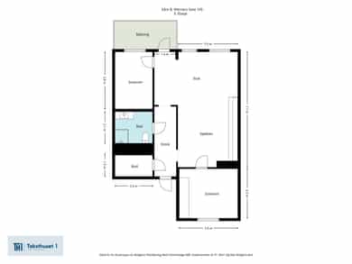 BRA-i: 77 kvm. Stue, stue/kjøkken, to soverom, bad og bod
