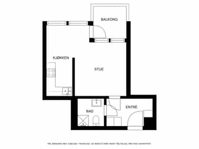 Leiligheten inneholder følgende: entré, bad, stue med utgang til balkong og kjøkken.