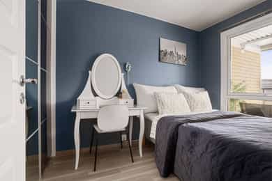 Leiligheten har meget gode solforhold, med sol fra morgen til kveld midtsommers.