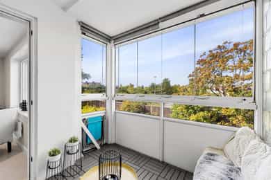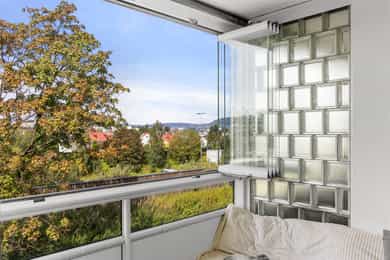 Lys, usjenert og gjennomført 3-roms endeleilighet med innglasset, solrik balkong og utsikt -Mulighet for leie av p-plass