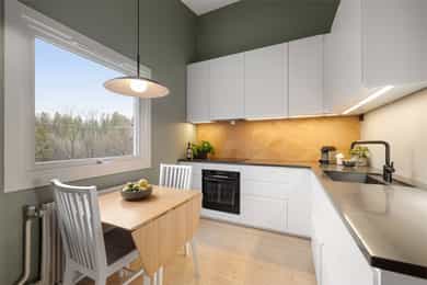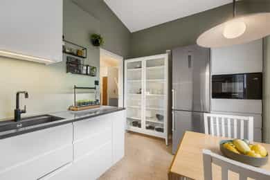 Velkommen til Geologsvingen 67B på Ullern, presentert av Eystein Garathun Næss i Nordvik Eiendom. Dette er en gjennomgående og lys 3-roms leilighet med imponerende takhøyde, flott utsikt og solrik balkong. Boligen har en romslig entré og en luftig stue med store vindusflater samt utgang til balkong med svært gode solforhold. Videre byr leiligheten på et moderne kjøkken fra 2020 med integrerte hvitevarer, et pent fliselagt bad med gulvvarme og to soverom med fleksible møbleringsmuligheter. Fyring og internett er inkludert i felleskostnadene. Fremstående kvaliteter: - Imponerende takhøyde og luftig romfølelse - Svært gode solforhold og solrik balkong - Rolig og trygg beliggenhet - Kjøkken fra 2020 med integrerte hvitevarer - Parkering/garasje - 2 romslige boder i kjeller - Kort gangavstand